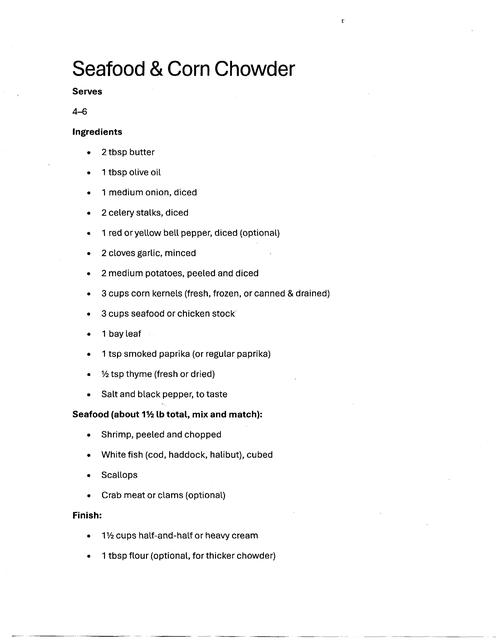 Seafood and Corn Chowder: A rich, hearty tribute to Nassau’s coastline, featuring sweet corn and fresh local catch.