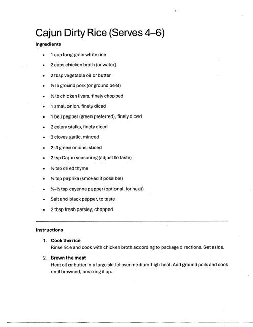 Cajun Dirty Rice: Bold and savory with the traditional addition of chicken livers; sautéed with the "Holy Trinity" for maximum flavor.