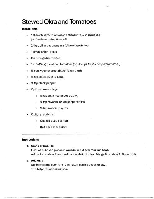 Stewed Okra and Tomatoes: A classic soul-food starter. The 5-7 minute sear on the okra ensures a perfect, non-slimy texture.
