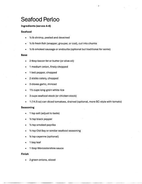 Shrimp Perloo: The Lowcountry rice staple. Served South Carolina style—a "Red Perloo" with the essential addition of tomatoes.